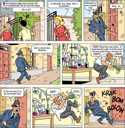 Suske en Wiske gaan op bezoek bij Lambik, die zich een heuse amateur-chemicus waant nadat hij bij het verhuizen een chemiekit ontdekte. Zijn explosieve experimenten worden verstoord wanneer de postbode hem een pakket komt leveren. Al snel blijkt dat het eigenlijk bestemd is voor een zekere professor Tellenbol. Wanneer onze vrienden het pakket bij de professor willen afleveren, komen ze oog in oog te staan met een inbreker. Professor Tellenbol werkt aan een sonometer, een wonderlijk apparaat dat de akoestische druk van geluid kan meten en zelfs geluid in een ruimte kan opzuigen. Het apparaat heeft de interesse gewekt van een hoop duistere figuren, want de inbreker is niet de enige die het op de professor en zijn uitvinding heeft gemunt! Zo komen Suske en Wiske in het oog te staan van een storm die hen tot aan de andere kant van de wereld brengt.